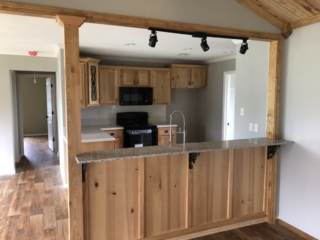 The sun peaks in among the many tree branches warming the surrounding woodland. Birds start to chirp, squirrels and rabbits scamper along the ground looking for food. Deer eat in the nearby farm field, fish splash the surface of the pond chasing their prey. Dark moonlit skies start to turn orange, then a radiant blue with white puffs of clouds dotting the surface. You are in the country and the “Rustic Retreat ” fits right into the environment. Exposed beams, cypress cabinets, Stained finishes throughout an open floor plan. That is our version of the “Rustic Retreat:. If that is the experience you are looking for, we can make it happen. Simple lines, semi rough surfaces, easy upkeep, yet strong and dependable. Our “Rustic Retreat” starts as little as 700 square feet up to 1800 square feet and we custom design it to fit your lot or country setting. Everyone needs some kind of retreat from the fast paced world and we do our part to make that happen.